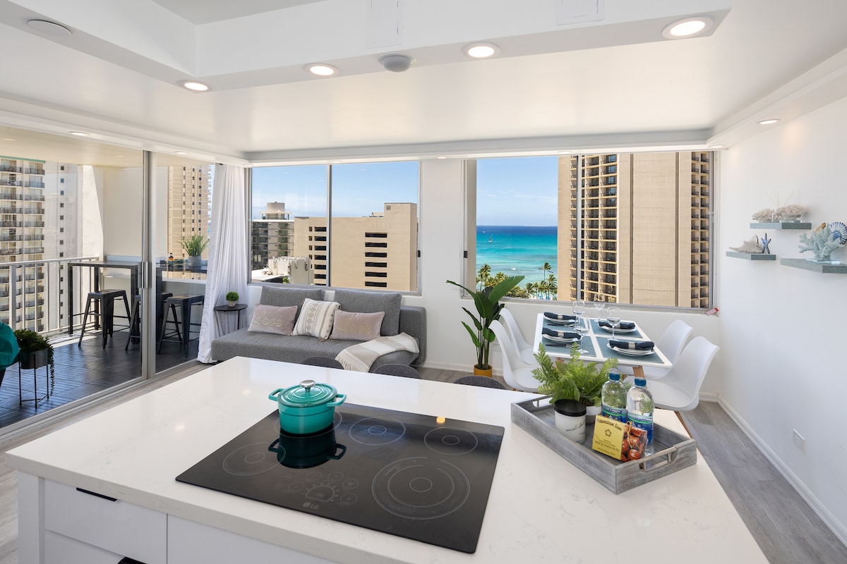 Aloha and welcome to one of the most amazing complete remodels you will find in Waikiki - completed end of 2022. This one-of-a-kind 1 bedroom with free 1 parking stall, pool and gym boasts spectacular ocean & Diamond Head views and is only 0.2 miles (5 min walk) from Waikiki Beach and closer to endless restaurants, shopping & so much more. We would love to have you stay with us and create memories in this truly magical place that is centrally-located, well appointed, and with fabulous views!