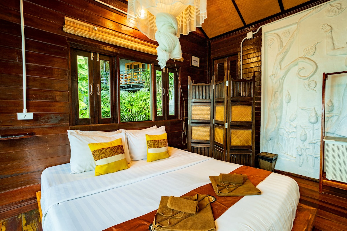 절벽 위에 자리잡고 있으며 열대 자연으로 둘러싸인 이 리조트는 야외 생활 공간이 있는 넓은 객실을 갖추고 있습니다. 수영장에서 일몰 전망을 감상할 수 있습니다. 코타오 헤리티지 하이드어웨이의 공용 공간에서 무료 와이파이를 이용하실 수 있습니다. 리조트의 각 객실은 에어컨이 설치된 캐노피 침대와 케이블 TV를 갖추고 있습니다. 룸서비스는 온종일 이용할 수 있습니다. 현지 레스토랑과 쇼핑 지역이 차로 5분 거리에 있습니다.