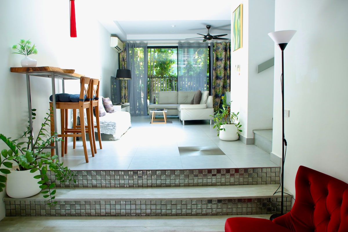 작은 커뮤니티에서 휴식을 취해보세요. 아름다운 수영장과 정원을 마주보고 있는 2베드룸 타운하우스가 완비되어 있습니다. 숙소 전체에서 주차 공간과 와이파이를 이용할 수 있습니다. 매일 신선한 시장, 세븐일레븐 7개, 5성급 골프 코스와 가깝고 마에남 해변과도 가깝습니다. 참고: 침실의 에어컨, 공용 공간의 천장 선풍기. 전기는 숙소당 7바트로 추가 요금이 부과됩니다.