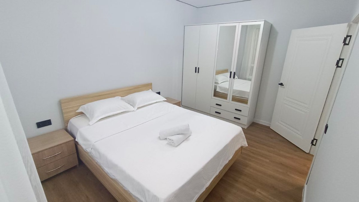 Welcome! We’re proud to offer one of the best guest experiences in the city! Sweet Home is a peaceful retreat featuring two cozy apartments, each thoughtfully designed with comfort and style in mind Located within minutes from Mega Center, the apartments offer beautiful window views of the majestic mountains. With soothing blue tones and warm wooden accents, Sweet Home creates the perfect balance of tranquility and elegance We are looking forward to hosting you