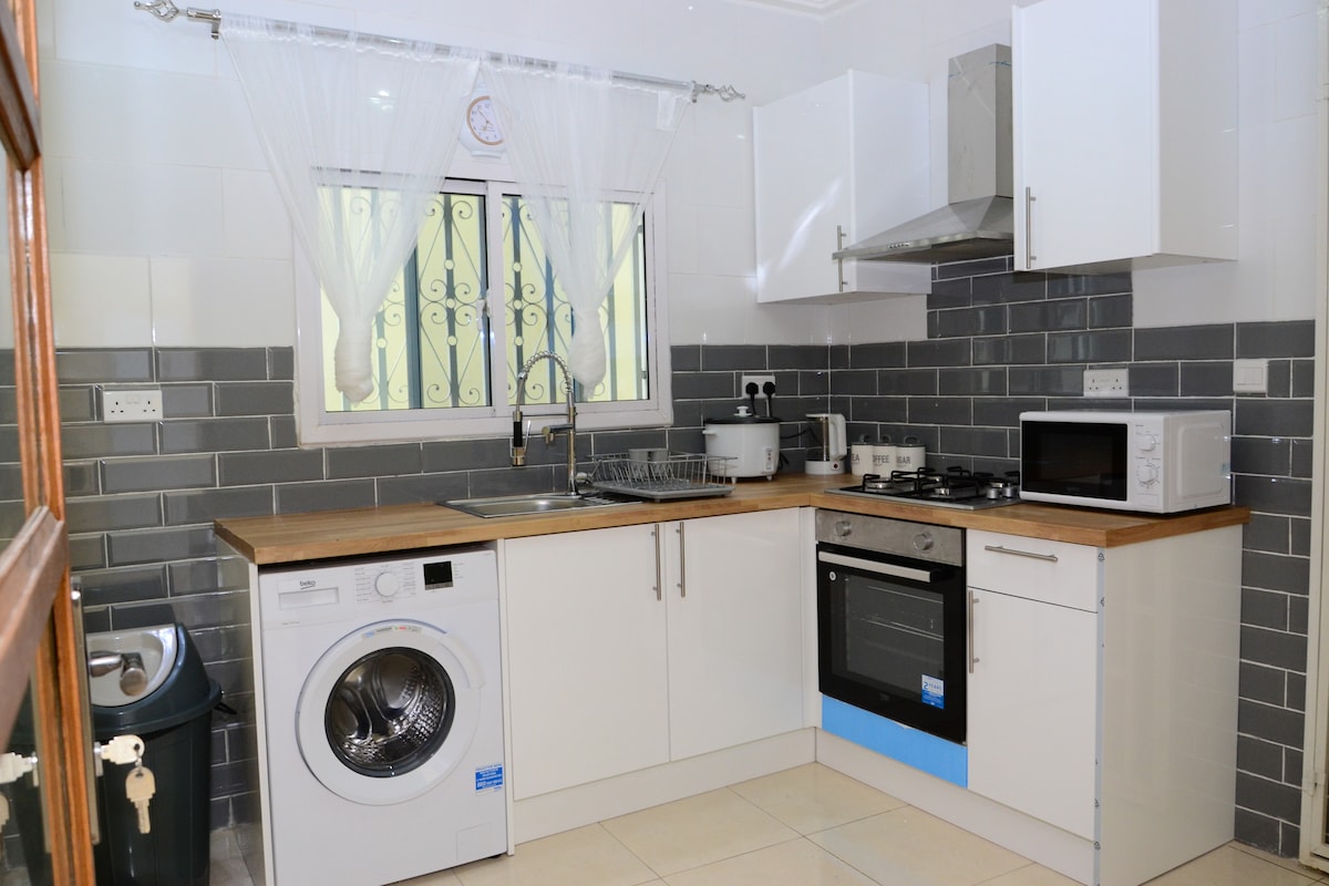 브루푸트 럭셔리 홈은 평화로운 브루푸트 가든에 위치한 세련되고 친환경적인 휴양지입니다. 에어컨, 와이파이, 넷플릭스, 50인치 스마트 TV, 완비된 주방, 감비아 문화에서 영감을 받은 화려한 인테리어를 즐겨보세요. 해변에서 단 10분 거리에 있으며 시장, 레스토랑, 문화 명소에 가깝습니다. 전용 주차장, 추가 보안을 위한 외부 CCTV 카메라, 따뜻한 현지 환대가 포함되어 있습니다. 커플, 가족 및 나홀로 여행객에게 이상적입니다. 현대적인 편의시설, 열대 지역의 매력, 따뜻한 분위기가 어우러진 숙소에서 편안하게 머물러보세요.