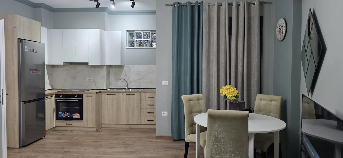 알바니아 남부의 문화 수도인 코르체 중심부에 위치한 아늑한 1베드룸 아파트에 오신 것을 환영합니다! 역사, 현지 음식, 아름다운 시골을 탐험하기 위해 이곳에 오시든, 이 세련된 아파트는 숙박을 위한 완벽한 기반을 제공합니다. 이 아파트에는 편안한 퀸사이즈 침대가 있는 넓은 침실, 소파 베드가 있는 현대적인 거실 (추가 게스트에게 적합), 내 집처럼 편안하게 지낼 수 있는 시설이 완비된 주방이 있습니다.
