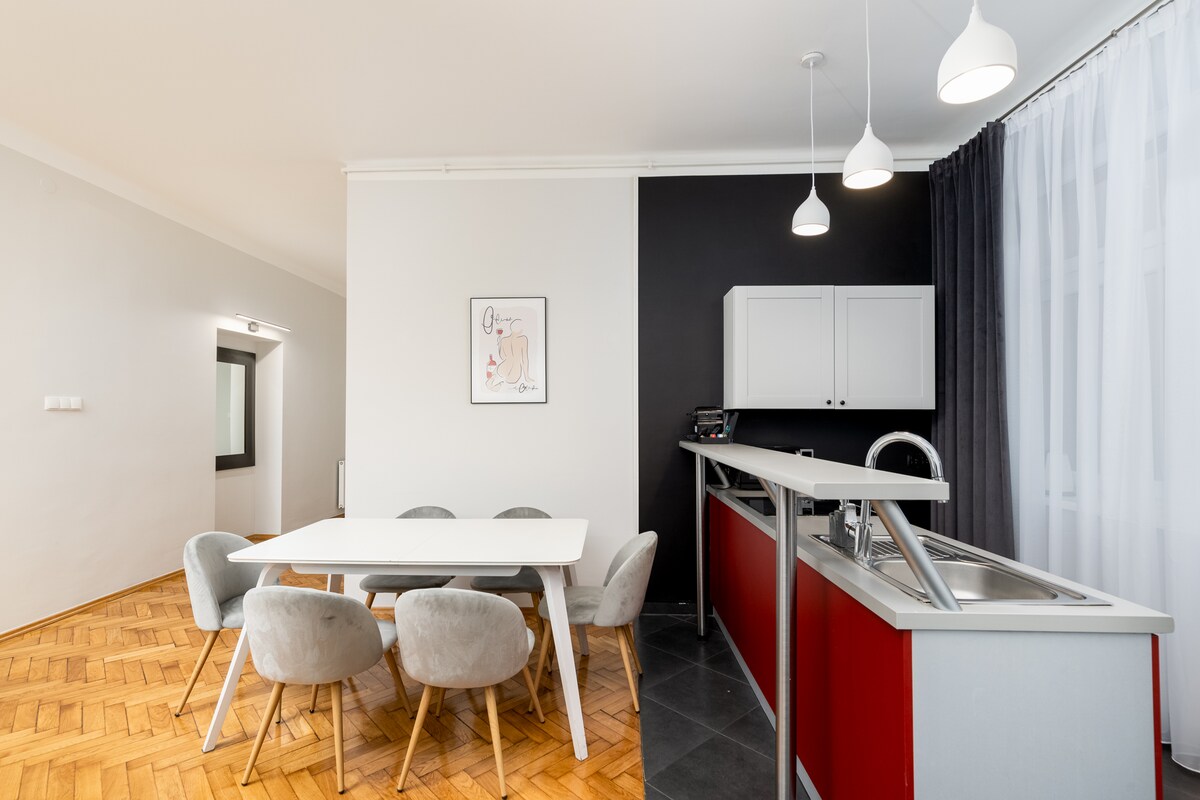 중심부에 위치한 클래식한 빈티지 디자인의 아파트로 역사적인 공동주택 2층에 위치해 있으며 거리와 안뜰 전망, 거실, 완비된 주방, 식사 공간, 대형 전용 욕실, 편안한 더블 침대가 구비된 조용한 침실 2개를 갖추고 있습니다. 에어컨, 난방, 넷플릭스, 와이파이, 세탁기 건조기 및 기타 편의시설이 제공되어 크라쿠프에서의 단기 또는 장기 숙박에 적합합니다.