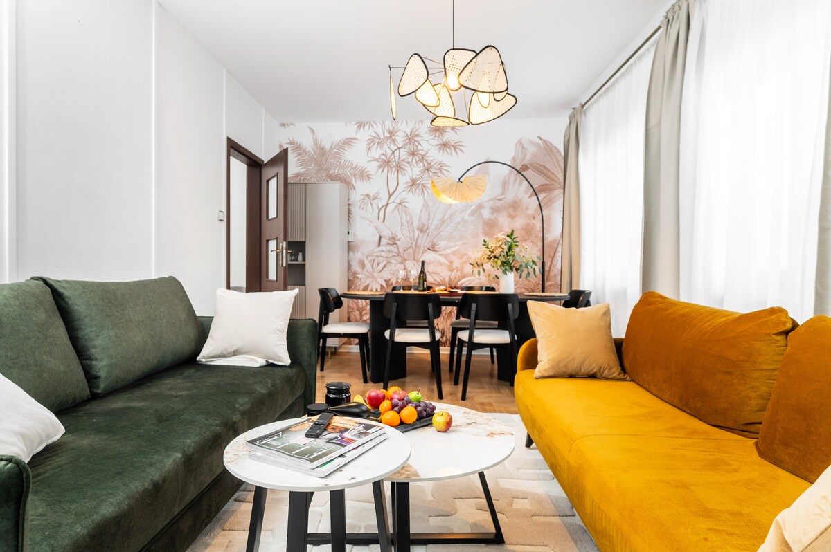 자쿠지, 사우나, 전용 정원을 갖춘 독특한 아파트 – 휴식을 취할 수 있는 완벽한 숙소! 전용 자쿠지, 사우나, 아늑한 정원 등 주요 하이라이트로 모닝 커피를 마시거나 평화로운 저녁 휴식을 취하기에 안성맞춤입니다. 게스트는 무료 지하 주차장도 이용할 수 있습니다. 자연과 가까운 낭만적인 주말이나 고급스러운 휴양지를 위한 이상적인 선택입니다.