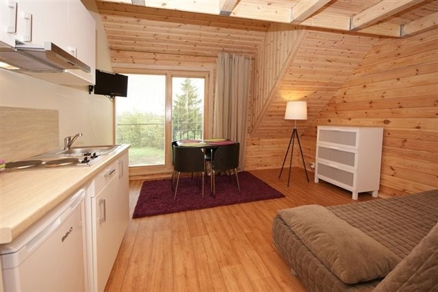 숲 근처에 위치한 아늑한 침실 2개의 아파트로 발트해와 가깝습니다(2.4km, 도보로 약 30분). 이 아파트는 모든 편의시설을 갖춘 평화로운 숙박을 보장하는 전용 농가에 있습니다. 이 농가는 최대 3개 그룹을 동시에 수용할 수 있어, 빌라 존파파르티스는 사랑하는 사람들과 시간을 보내기에 멋진 장소입니다. 존파파르티스 2 아파트: 더블 침대가 있는 침실 2개 접이식 소파 1개
