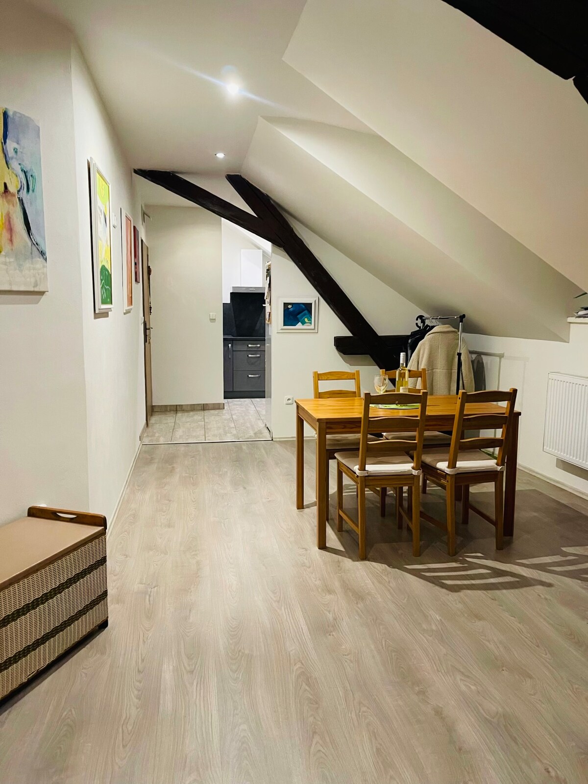 Ubytování v centru Hlinska s vlastním parkováním. Plně vybavený byt, který se nachází v 1.patře budovy (vstup po bočním schodišti). V sousedství další dva byty, kde žijí trvalí nájemníci. Ložnice: manželská postel + rozkládací gauč v obývacím pokoji. Rozkládací gauč má šířku 140 cm. Plochá TV + Amazon Prime. Možnost uschování sportovního vybavení vybavení v přízemí (samostatná uzamykatelná místnost). Vhodná lokalita k cestování a turismu.