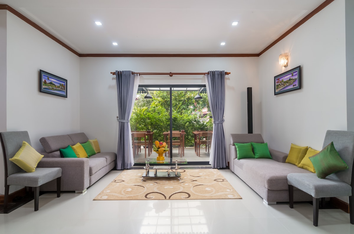 전용 수영장이 있는 5베드룸의 넓은 부티크 숙소로 오아시스 분위기의 크메르와 서양 건축의 독특한 스타일로 지어졌으며, 시엠레아프의 가장 큰 현지 시장 근처에 위치하고 있으며, 시내 펍 스트리트에서 단 10분, 멋진 앙코르와트에서 15분 거리에 있습니다. 이 아름다운 빌라는 단체 또는 가족이 프라이빗 숙박을 즐기고 집에 온 것처럼 편안하게 느끼기에 이상적입니다. 숙박 기간 중 정통 크메르 식사, 교통/가이드 투어, 공항 교통편을 준비해 드릴 수 있습니다.