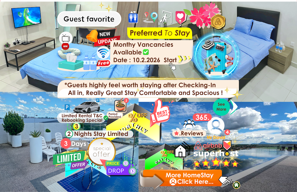 My homestay is located at very strategic location (Boulevard shopping mall), which is nearby airport, bus terminal, shopping malls & major tourist attractions. Therefore, my homestay is suitable for business travelers, couples, and travel with friends & families Guests are able to access swimming pool, gym, sauna, steam bath, shopping & eating places. Please enjoy your trip & stay in my homestay, and at the same time, explore Kuching’s must-go attractions; Sarawak cultural village, etc.