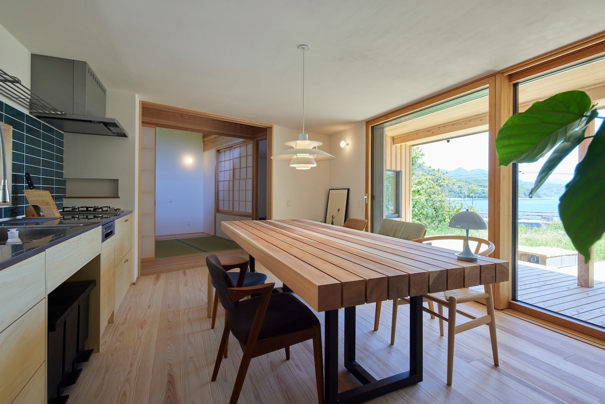 愛媛県伊予市下灘駅の近くの海岸沿いに、一日一組限定の一軒貸しの民泊施設がオープン。 目の前に広がるのは見渡す限り美しく青く澄み渡った空と海。 漆喰をベースに落ち着いた空間を演出。 瀬戸内海を一望でき海の目の前で一階には、夕日を見ながら、スタイリッシュなキッチンで料理ができます。 二階には、テラスで夕日を見ながら、つくろぐことができます。 クイーンサイズのベットが一つ。クイーンサイズに変わるkoalaのソファーベットが一つ。 二階には、ダブルのベッドが一つ。 最大4名様まで宿泊できます。 朝ごはんの自然酵母パン、ロダンコーヒー、付きです。 食器は、愛媛県出身陶芸家の佐々木智也の作品と、ムスタキビ、龍泉窯を使用しております。タオルは、今治タオルの伊織のタオルを使用しております。 シーツは、リネンを使用しております。 もし、ご夕食が必要な場合は、隣接しているShiojiレストランで、ゲスト様のみ使用する事ができます。 駅への送迎は無料でしております。 豊かで想い出に残る素晴らしいひと時をお届けします。 他には類を見ない瀬戸内の絶景を望む別荘でお楽しみください。