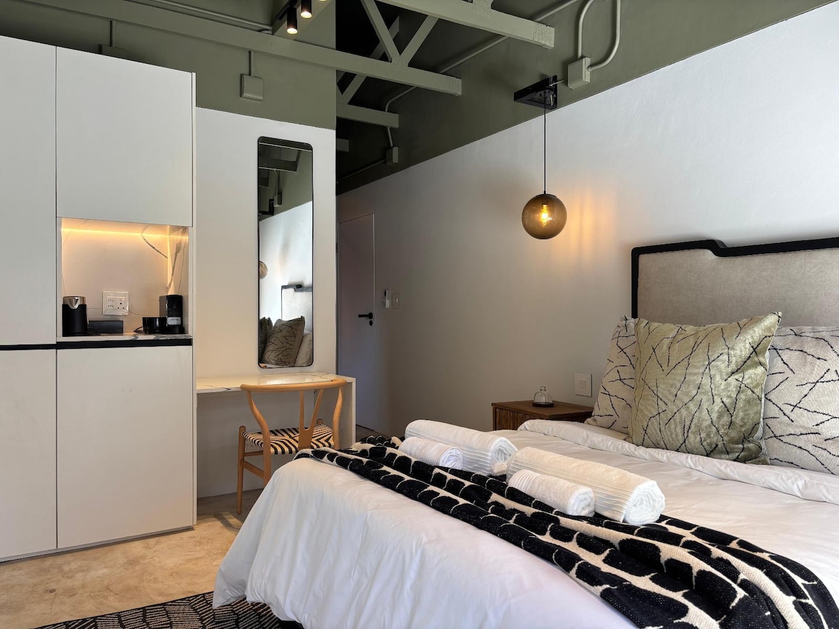A cosy option ideal for solo travellers, this room features a three-quarter bed and an en-suite bathroom with a shower. Amenities include air-conditioning, a TV with DStv, Wi-Fi, a fridge, microwave, coffee and tea-making facilities, and a work desk.