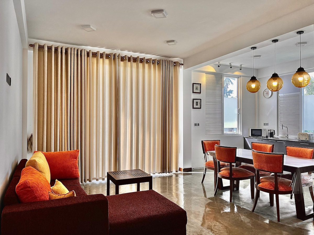 홀 (킹사이즈 침대 + 퀸사이즈 소파 베드 포함) 및 주방이 있는 침실 1개 아파트로, 전용 주차장을 포함한 모든 필수 편의시설을 갖추고 있습니다. 푸드 시티, 아르피코 슈퍼마켓, 인기 패스트푸드 아울렛 피자 헛 & 타코 벨, 채널링 센터가 있는 레스토랑 및 병원에서 도보 거리 내에 편리하게 위치하고 있습니다. 홈메이드 스리랑카, 영어 또는 유럽식 아침, 점심, 저녁 식사는 요청에 따라 준비해드릴 수 있습니다. 신선한 주스와 식료품을 당직으로 이용할 수 있으며, 무료 배달