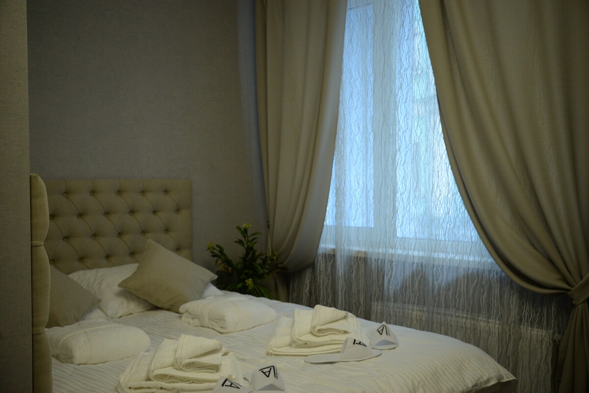 Номер в апарт отеле который находится по адресу улица Крещатик 15. В номере сделан современный ремонт. Так же в апартаментах есть видовая терраса с видом на улицу Крещатик. В 1 минуте ходьбы от дома находится станция метро "Крещатик" и "Майдан Независимости". Так же прямо рядом с домом находится множество кафе, ресторанов и улица самых дорогих бутиков. В номере есть все для комфортного проживания. В распоряжении гостей бесплатный Wi-Fi.