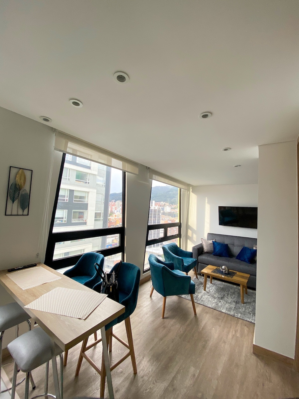 보고타 (치코) 에서 가장 독점적이고 안전한 지역에 위치한 럭셔리 원 베드룸은 최고의 레스토랑, 쇼핑 센터에서 도보 거리에 있으며 많은 업체와 가깝습니다. 전용 작업 공간, 전용 테라스, 자동 벽난로, 안정적인 와이파이, 전용 주차장 및 건물 보안을 갖춘 최고 수준의 숙소. 어메니티: 벽난로와 야외 그릴이 있는 아름다운 파노라마 테라스를 즐겨보세요. 사우나나 스팀룸에서 스쿼시를 즐기고 휴식을 취해보세요.