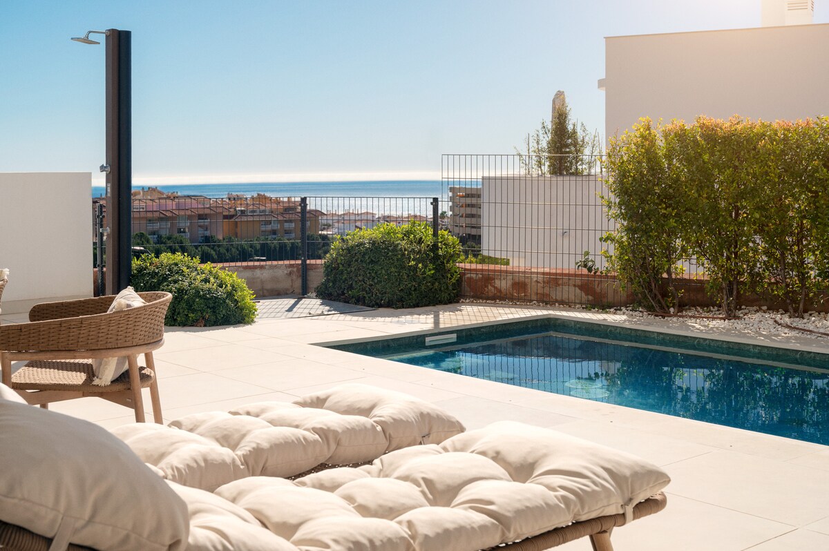 마르베야의 고요한 펜트하우스 루프톱 수영장 바다 전망