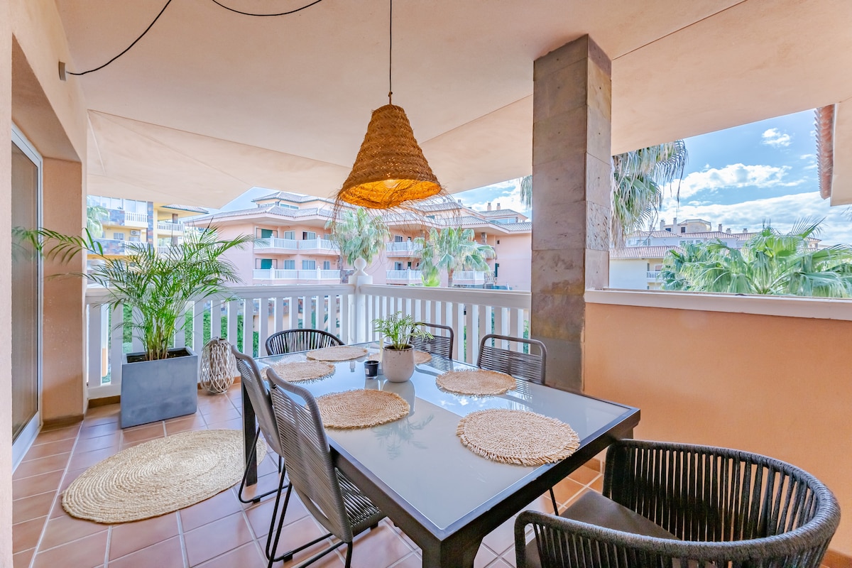 푸엔히롤라의 럭셔리한 이구에론 웨스트에 오신 것을 환영합니다! 이 우아한 아파트는 더블 침실 3개, 현대적인 욕실 2개 (욕실 1개), 대형 주방이 있는 넓은 개방형 거실을 갖추고 있습니다. 전용 수영장, 일광욕 의자가 있는 야외 라운지, 해먹, 8인용 식사를 즐겨보세요. 멋진 바다뷰와 에어컨, 2대의 주차공간이 있어 휴식을 취하기에 안성맞춤입니다. 인접한 이구에론 스포츠 리조트는 파델, 테니스, 피트니스, 레스토랑 등을 제공합니다.