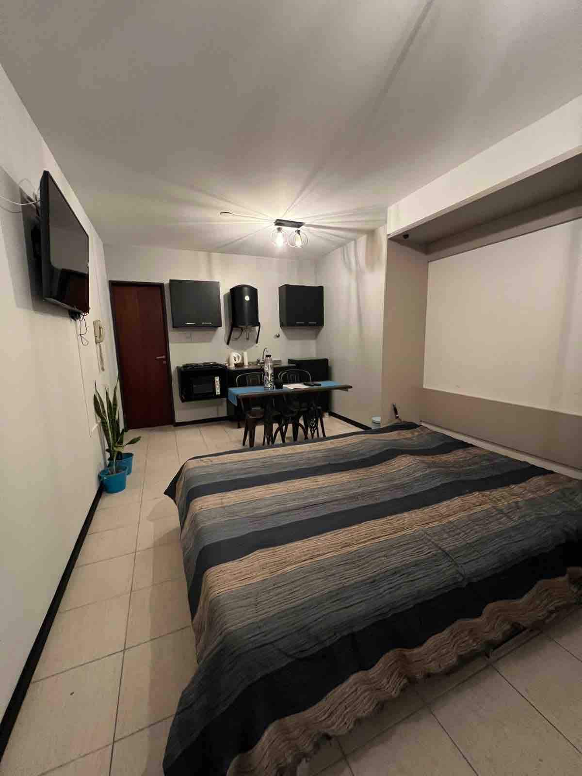 Quédate en este alojamiento único y disfruta de una visita inolvidable. Ubicado en zona Parque-Costanera de la ciudad de Paraná, podes disfrutar del aire libre con vista al rio. Capacidad cómoda para dos personas, equipado completo, con una cama matrimonial y un sofá cama en el sector del comedor cocina. Dispone de Tv, Wifi, Aire frio-calor, cocina completa. Con cochera cubierta con cargo adicional.