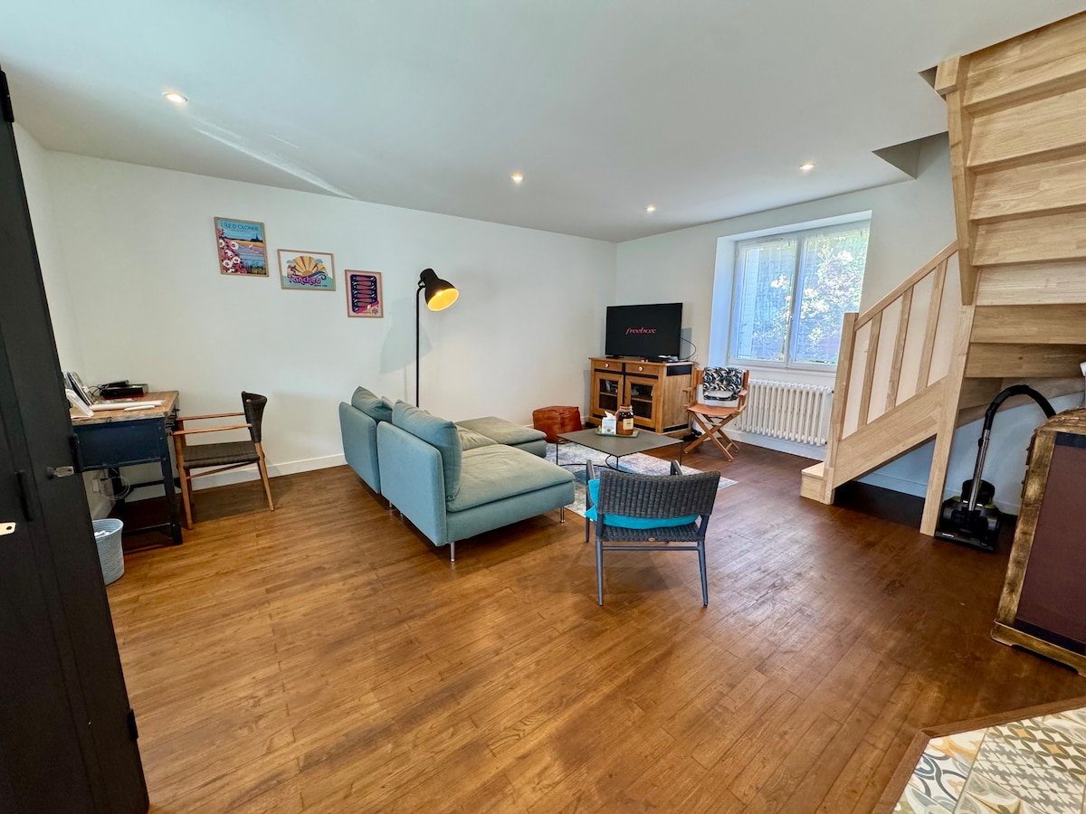 라로쉬 쉬르 욘에 위치한 70m2 크기의 주택으로 새들이 즐겨 쉬는 정원이 있는 주택가에 위치해 있으며 사블돌론에서 30분 거리에 있습니다. 거실: 대형 스크린-전기 소파-장작 난로 침실: 침대 160cm-수납장-침대 정돈 욕실: 욕조/샤워 - 수건 제공 주방: 시설. 청소용품 제공 추가 사항: 전기차 충전을 위한 강화 소켓 편리함: 버스 정류장 50m 호스트가 도착을 도와드립니다. 5일부터 제공되는 방데식 간식