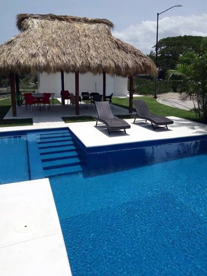 Muy bonito y acogedor departamento ubicado en planta baja, en el corazรณn de Huatulco, localizaciรณn inmejorable a pocos pasos de restaurantes, bares y del parquecito del pueblo. ยกEstamos a tan solo 8 min de la playa en coche! Zona tranquila y segura, con vigilancia en conjunto residencial. Cuenta con centro de lavado, pantallas, TV satelital, Netflix, Wifi y climas en la sala y recรกmaras. Si deseas hacer aรบn mรกs placentera tu estadรญa, la alberca y la zona de asadores ยกte encantarรกn!