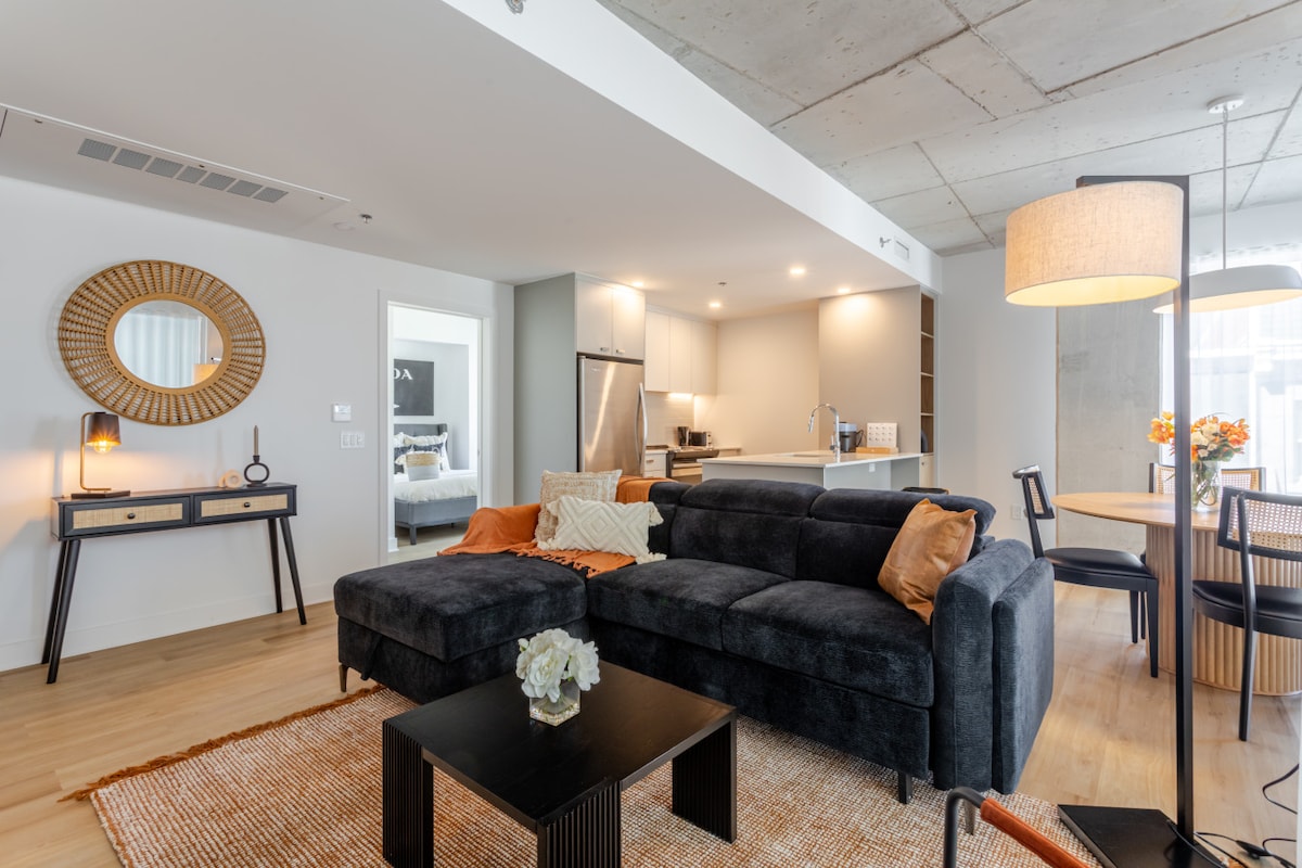 Charming 1-Bedroom Apartment in the Heart of Griffintown Experience Montreal like a local from this stylish one-bedroom apartment, perfectly located just steps from Downtown, the Lachine Canal, and the Old Port. Enjoy a cozy bedroom, bright and modern living area, fully equipped kitchen, and high-speed Wi-Fi. Surrounded by trendy restaurants, cafés, boutiques, and public transit, it’s the ideal home base for business travelers, couples, or anyone seeking a chic Montreal getaway.