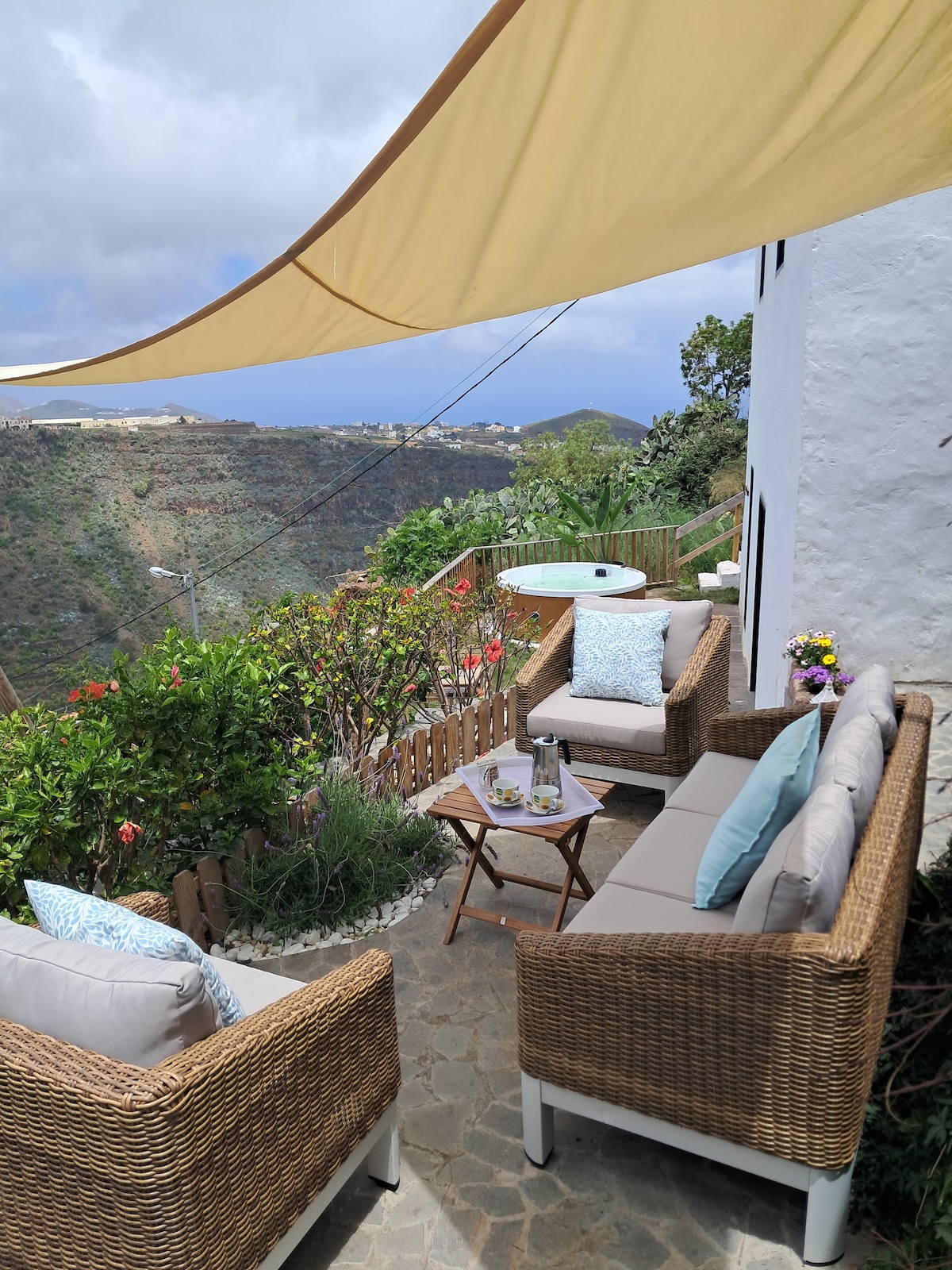 놀라운 순간과 전망을 즐길 수 있는 베란다가 있는 아파트. 저녁 식사나 자쿠지를 즐길 수 있습니다. 필요한 모든 것을 갖추고 있으며, 2개의 아파트만 있는 전용 공간에 있으며, 수영장과 솔라리움이 있고 식물과 꽃으로 둘러싸여 있어 자연을 즐기며 휴식을 취하거나 일하기에 이상적인 완전한 평화로움의 공간을 만들어 주며 라스팔마스에서 차로 단 10분 거리에 있습니다.