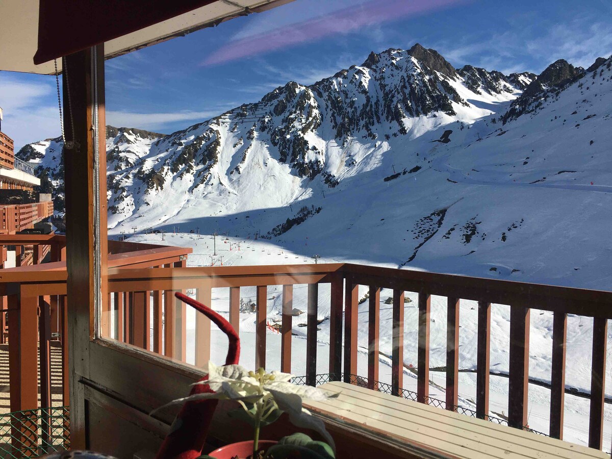 가족을 위한 훌륭한 숙소: 침대 5개 피레네 산맥에서 가장 큰 스키 지역인 몽기아 산비탈로 바로 연결됩니다. 산과 스키 슬로프의 파노라마 전망을 감상할 수 있는 18m²의 대형 테라스. 사계절 내내 온수 실내 수영장이 있는 레지던스 뒤 미디 침대 4/5개 침실 1개 + 소파 베드 1개 + 매트리스 80/200cm 욕실 - 화장실 1개 시설/장비 TV(넷플릭스) f 식기세척기, 오픈/미주리 대형 냉장고 네스프레소 무료 와이파이 Squeegee 스키 보관함 + 안전한 실내 주차장