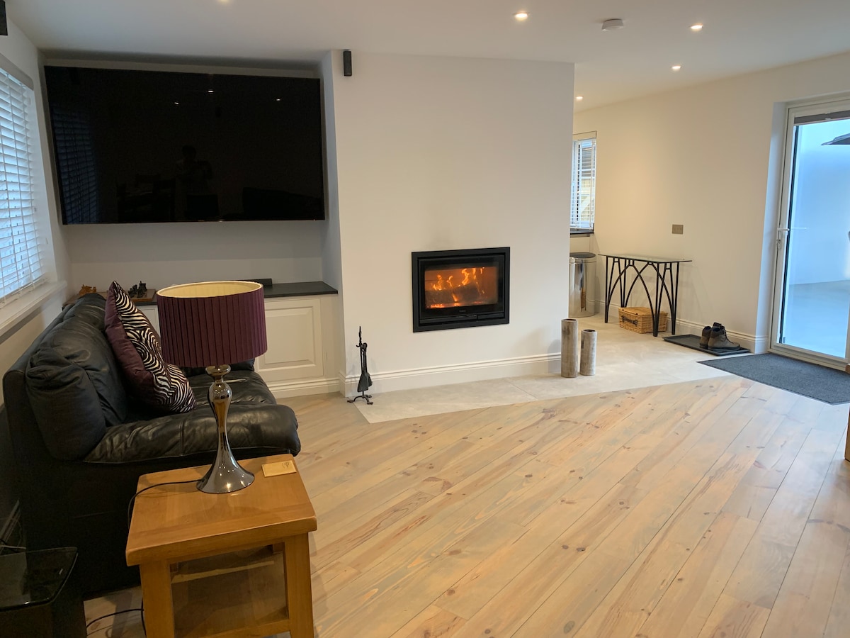 현대적이고 넓은 2베드룸 전원주택에 오신 것을 환영합니다! 매우 큰 더블 룸 2개가 있으며, 하나는 슈퍼 킹사이즈 침대가 있어 싱글로 나눌 수 있습니다. 우아한 욕실에는 대형 샤워실과 욕조가 있습니다. 1층에는 빌트인 책상과 벽난로가 있는 넓고 쾌적한 거실과 야생화 들판이 내려다보이는 데크, 잔디, 좌석이 있는 전용 정원으로 연결되는 넓은 주방 식사 공간이 있습니다. 아름다운 시골 분위기에서 차량 1대를 노외 주차장에 주차하실 수 있습니다.