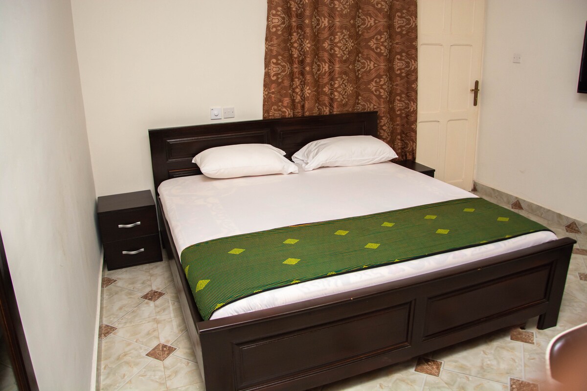 Comfort and elegance with our Queen Size bedroom at Osdala Lodge. This room is a serene haven designed to envelop you in relaxation. The Queen Size bed, adorned with plush linens and soft pillows, invites you to unwind after a day of exploration or business. The room features thoughtful amenities including air conditioning for your comfort, and a wall-mounted digital television screen for entertainment.