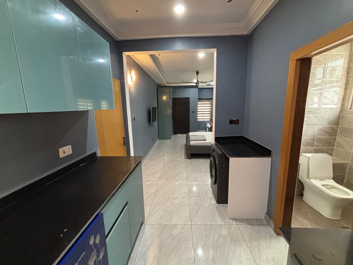 주차 공간, 와이파이가 있는 침실 3개 아파트. 게스트의 편안함을 위해 여러 채널이 있는 DSTV를 제공했습니다. 게스트를 위한 다이닝 홀도 마련되어 있습니다. 침실은 모두 최고 수준으로 가구가 배치되어 있습니다. 복도나 거실은 친구와 게스트의 관계를 받을 수 있도록 가구가 배치되어 있습니다. 세 개의 객실은 게스트를 수용할 수 있습니다. 게스트를 위한 욕실 2개와 화장실 시설 2개가 있습니다. 복도를 포함한 모든 객실에는 에어컨이 제공됩니다.