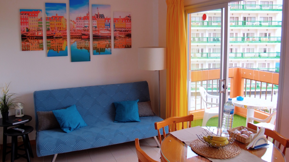 Disfruta de la sencillez de este alojamiento tranquilo y céntrico en zona Martiánez. Estupendas vistas al mar y a la avenida principal. Muy cerca de centro comercial, supermercados, restaurantes, paseo marítimo, playas y el Lago Martiánez. El apartamento cuenta con una cama doble y un sofá, con posibilidad de abatir y que pueda dormir un niño o un adulto (consultar). Dispone de piscina comunitaria y parking comunitario limitado. Hay posibilidad de pedir una cuna supletoria.