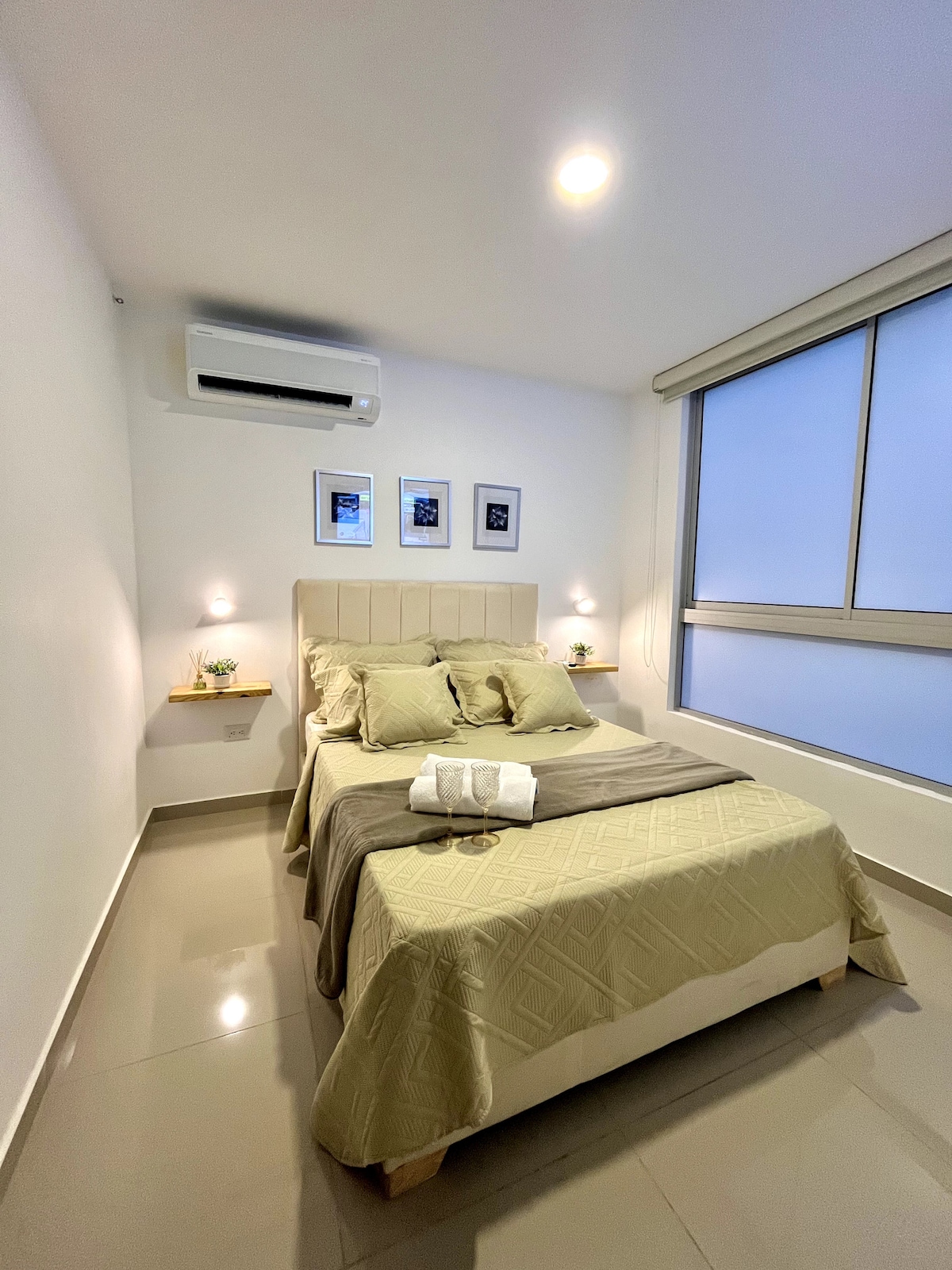 Hermoso estudio con todas las comodidades para sus vacaciones o viaje de negocios. Estámos situados a solo 5 minutos de centros comerciales, restaurantes, y bancos. El edificio cuenta con lobby, parqueadero, salas de coworking, Salón de juegos y TV, Gimnasio, jacuzzi y vigilancia las 24 horas. Para su comodidad ofrecemos servicio de mini bar por un costo adicional.