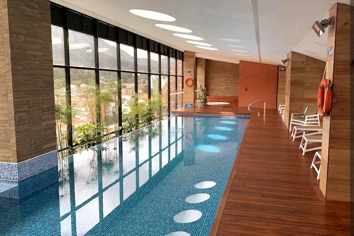 도시와 산의 숨 막히는 전망을 즐길 수 있는 멋진 로프트. 건물에서 가장 고급스러운 침대에서 5성급 호텔과 비슷한 수준의 편안함을 즐겨보세요. 인생 최고의 숙면을 보장하는 푹신한 베개. 넷플릭스가 있는 60인치 TV, 시설이 잘 갖춰진 주방을 즐기고 창가의 편안한 의자에서 휴식을 취해보세요. 온수 샤워, 헤어드라이어, 넉넉한 옷장 공간, 완벽한 업무 공간. 예정된 편의 시설: 옥상, 공동 작업, 헬스장. 트랜스밀레니오 역에서 가깝습니다. 지금 예약하고 잊지 못할 숙박을 즐기세요.