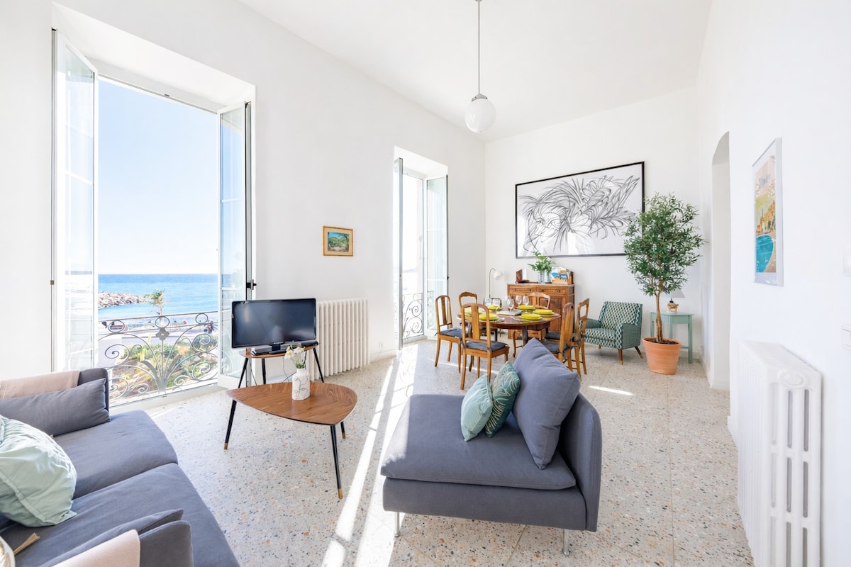 매우 높은 천장이 있는 137m2의 밝은 4개 방 아파트로 완전히 개조되었으며 멋지게 꾸며져 있습니다. 도심 한가운데에 위치하고 있으며 해변을 마주하고 있어 도보로 망통을 둘러보고 바다를 완전히 즐길 수 있습니다. 바다 전망이 보이는 거실로 연결되는 대형 주방이 있어 친근한 분위기에서 식사를 준비할 수 있습니다. 아파트 밑에 다양한 상점, 레스토랑, 바가 있습니다. 가족이나 친구들과 함께 머물기에 이상적입니다!