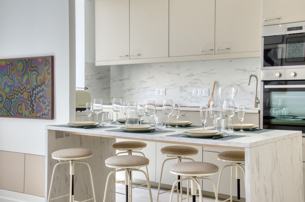 « SEAVIEWS BY JENNI MENTON » 소개: 프롬나드 뒤솔레이에 위치한 바다 전망의 멋진 2 룸 신축 아파트. 50m2의 디자인, 18m2의 넓은 테라스, 아파트 전체에서 보트에 탄 것 같은 바다 전망. 4인이 편안하게 머물 수 있도록 설계되었습니다. 세련된 인테리어, 고급 소재 및 시설. 폐쇄형 차고* 엘리베이터 에어컨 스마트 TV 무제한 초고속 인터넷 보스 블루투스 스피커 모든 상점과 액티비티에서 도보로 몇 분 거리에 있습니다. 레지던스 아래에 버스 정류장, 도보 거리에 있는 역.