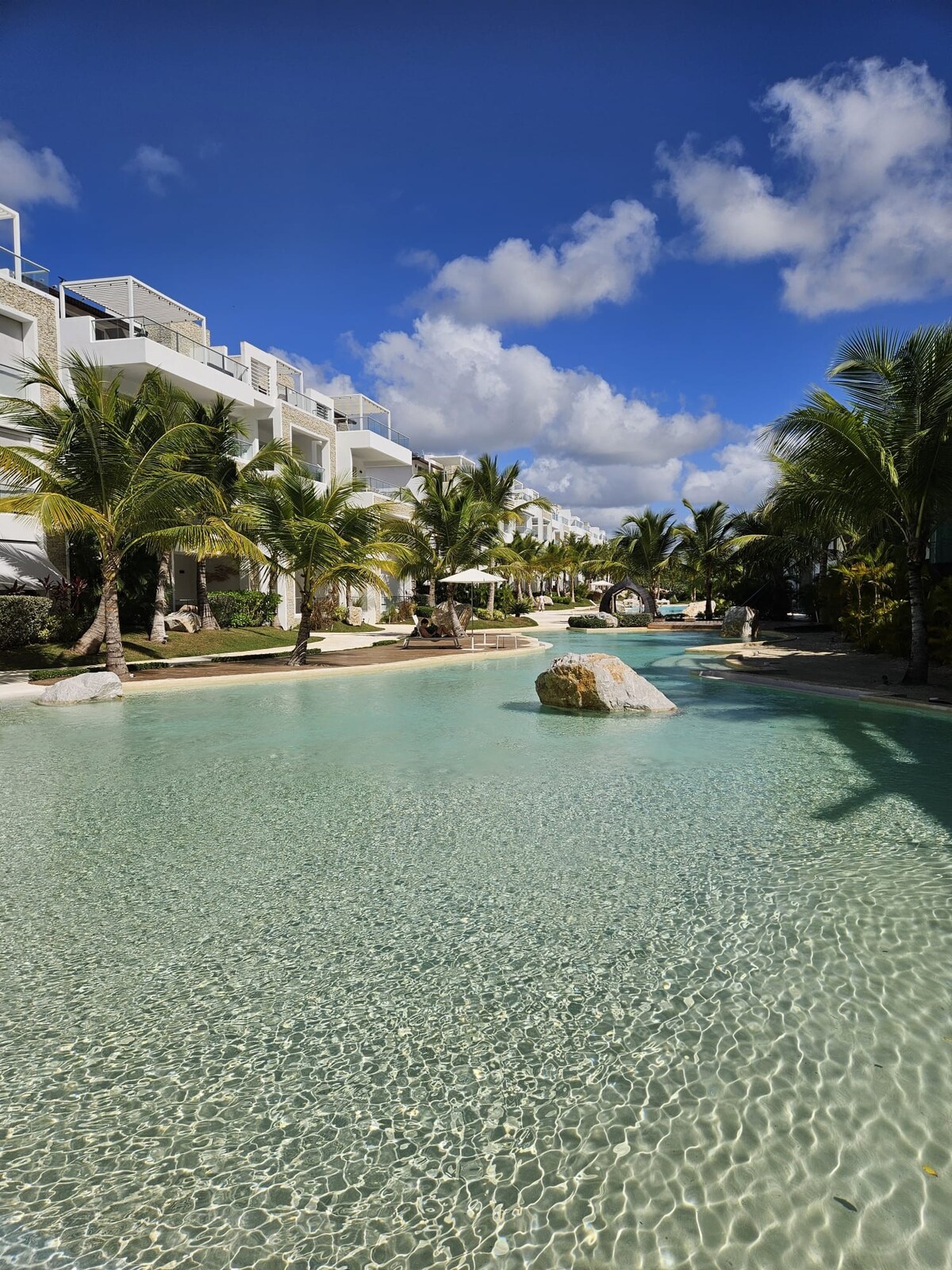 A solo 1 minuto caminando de la playa privada (visible desde la puerta del apartamento), ubicado en área más exclusiva de Bayahibe, Dominicus. Dentro del exclusivo resort Cadaqués: 3 piscinas, muelle privado, parque acuático, restaurante, bar-café, jardines tropicales, Cama king cómoda y sábanas de 300 hilos, A/C de 24,000 BTU, silla columpio (hasta 350 lb), cocina equipada, WiFi rápido y Smart TV, libros, juegos de mesa. Todo listo para que vivas una estadía inolvidable y cómoda en el paraíso!