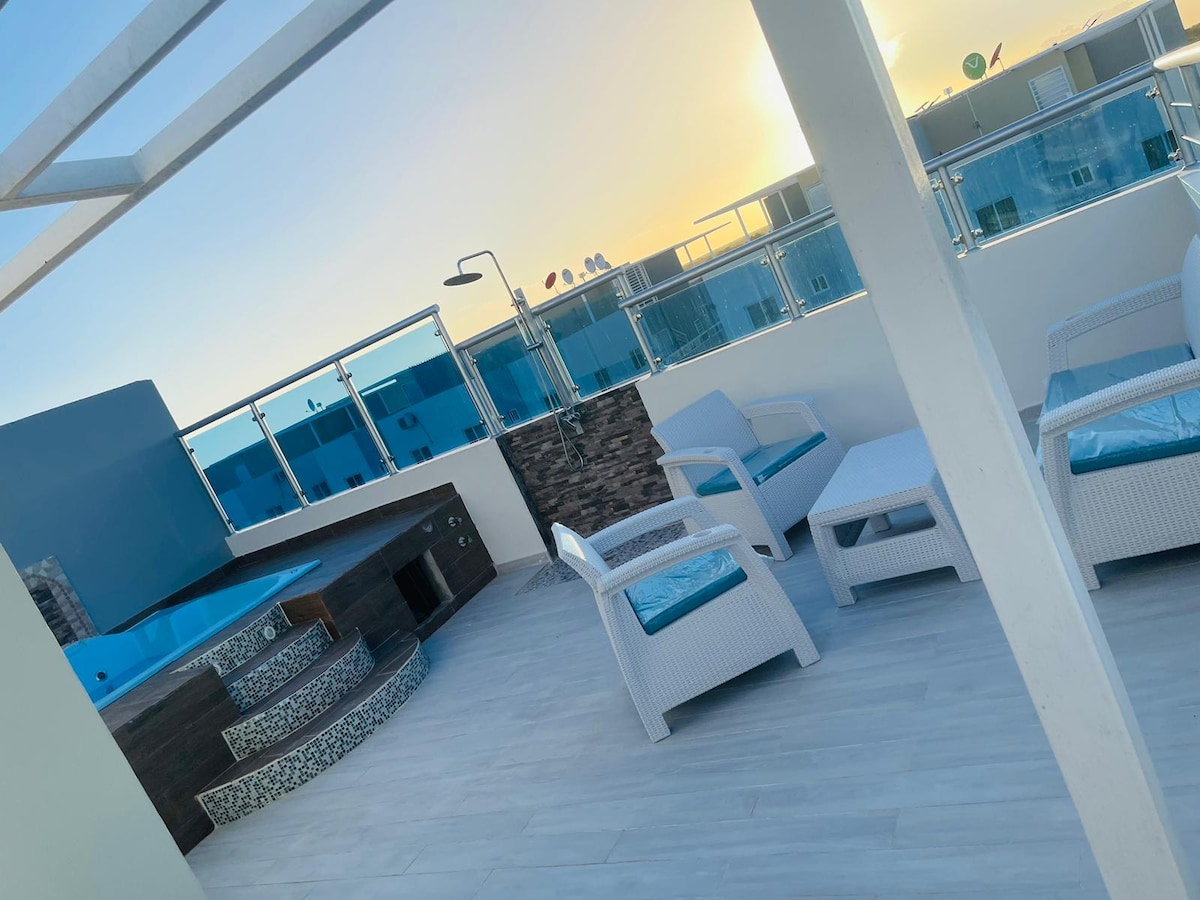 멋지고, 현대적이며 멋진 전망 현대적인 액세서리. 조리도구, 냉장고, 가스레인지, 전자레인지, 토스터, 커피 메이커. 에어컨, TV, 스피커, 와이파이, 바비큐, 세탁기, 히터, 다리미. 엘리베이터, 공용 공간의 가구, 정자, 수영장, 자쿠지. 9분 거리에 카사 데 캄포, 5분 거리에 플라야 칼레타, 2분 거리에 힐튼 호텔, 인근에 알토스 데 차돈과 라 로마나 센터, 바, 레스토랑. 가족 및 친구와 함께 즐기기에 안전하고 아름다운 완벽한 장소입니다.