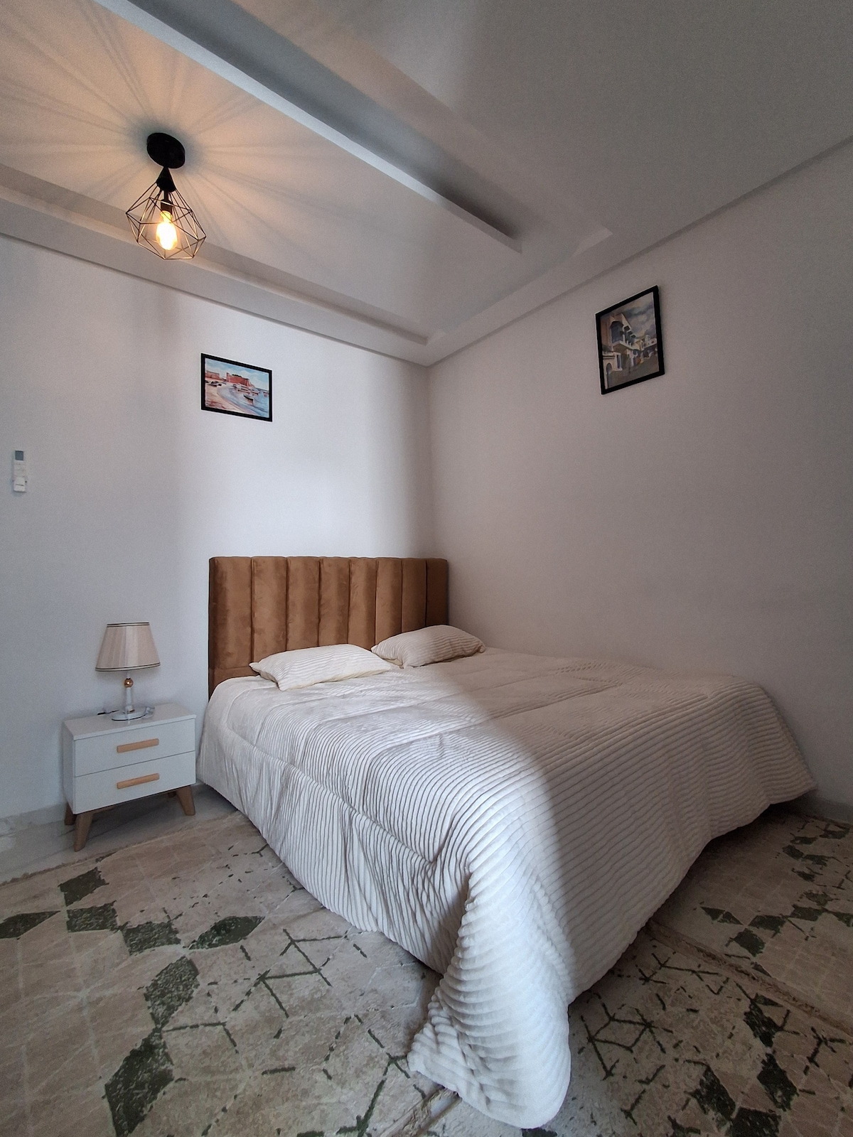 매그라샨 MG 앞 시테 와하트 메인 애비뉴의 조용한 레지던스 "파라"에 위치한 열정으로 리모델링한 매우 아름다운 아파트로, 튀니스에서 가장 유명한 도시 중 하나이며 무엇보다 매우 안전하고, 24시간 연중무휴로 활기찬 지역이며, 모든 편의 시설(상점, 티 숍, 스포츠 센터, 레스토랑 등)에 가깝고, 호숫가, 튀니지아 몰, 카르푸 라 마르사, 튀니스 카르타주 공항에서 10분 거리에 있습니다. 성인 3명과 유아 1명까지 수용할 수 있습니다.