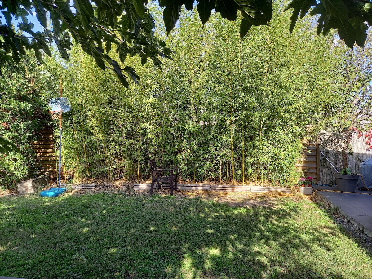 보르도 중심지에서 15분 거리에 있는 그라디낭 지역에 위치하고 있습니다. 휴가 숙박을 위해 40m2 정도의 아파트를 제공하며, 저희의 주 거주지와 인접해 있습니다. 조용한 지역, 근처 주차장. 침실 1에 최대 4명 침대 1개 2인용 + 1개 90cm 침대 1개. 메인 룸에는 클릭 클랙 1개가 있어 2명이 사용할 수 있습니다. 세탁기, 가스 쿡탑, 전자레인지, TV, DVD 플레이어가 완비되어 있습니다. 무료 와이파이. 유아용 침대, 의자, 욕조 등의 장비가 갖춰져 있습니다. 상점이 가깝습니다.