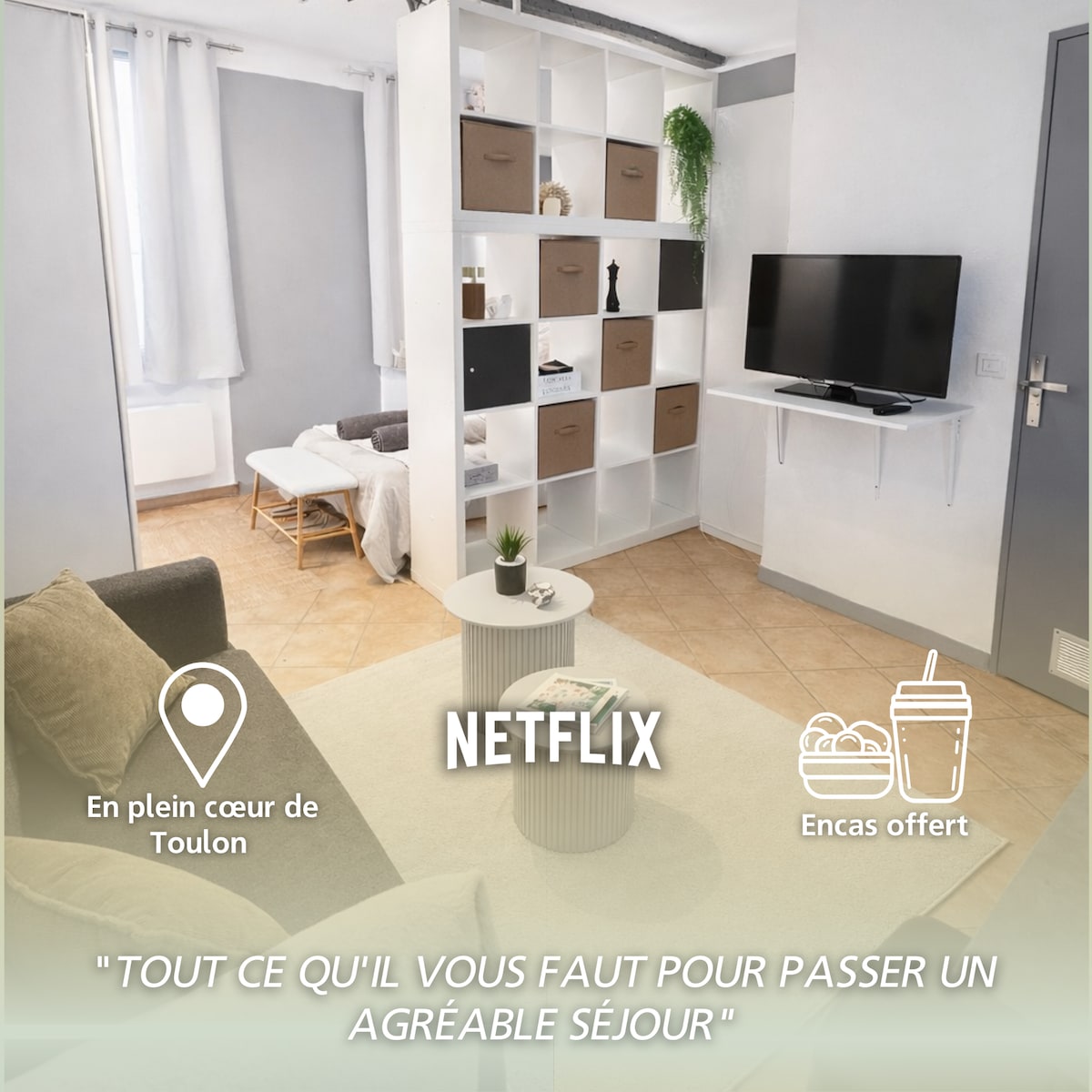 Profitez d'un studio moderne neuf qui vous donnera tout le confort nécessaire, douche italienne, toilettes suspendues, cuisine équipée, internet haut débit, Netflix,bureau pour travailler. Jardinet non accolé mais privatif avec salon de jardin et espace barbecue. Situé à 5 min des grands centres commerciaux comme l’avenue 83/ proximité Toulon / zones d’activité / hôpital / université/plages … Nous nous ferons un plaisir de vous accueillir. Bon séjour dans notre belle région ! 🌞