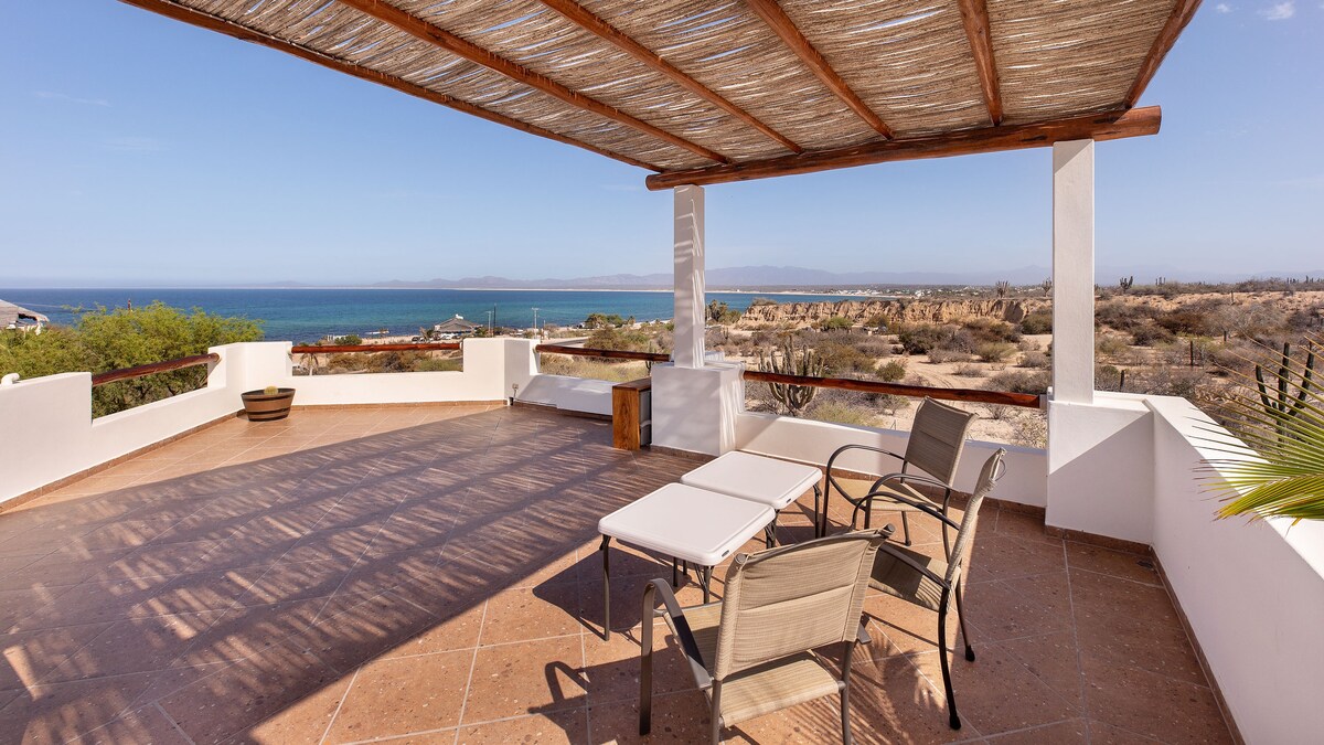 Designed for wind-chasers and peace-seekers alike, our new modern casita is your serene basecamp; Enjoy the simplicity of this quiet, centrally located lodging. This property is special because it was designed with lovers of the sea, wind, and tranquility in mind. Just a 5-minute walk from the beach , boat ramp and Playa Central, this new house combines modern comfort, reliable Starlink satellite Wi-Fi, and a relaxed atmosphere with spectacular views of the bay and the desert All property yours