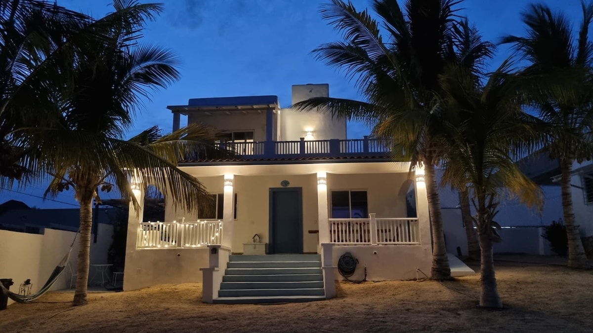 This centrally located house near Playa Central is close to everything, just a short walk to the beach and a grocery store. The quiet neighborhood offers great views. The kitchen is fully equipped, and the room has a queen-size bed. There are two full bathrooms and a queen sofa bed for extra guests. Enjoy high-speed Starlink satellite internet during your stay. Note: There is no AC. We have two ceiling fans for the living room and a floor fan for the bedroom. Hot months may be an issue.