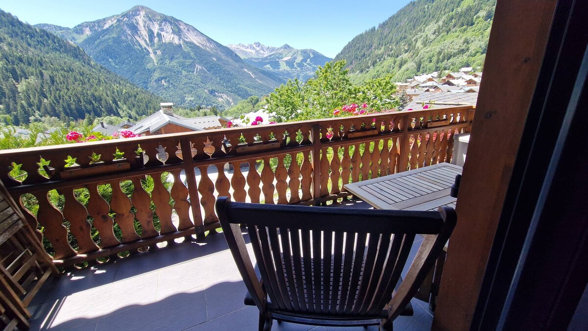 Appartement savoyard cosy au 1er étage. Au calme, voie sans issue, et résidentiel près du centre de la station. Vue dégagée sur la vallée de Courchevel. Orienté plein sud, la terrasse avec salon de jardin profite du soleil toute l'année. 2 chambres, une grande pièce ouverte sur cuisine, toute équipée, salle à manger et salon avec canapé lit. A 2mn à pied de la boulangerie, 5 du centre de la station et à 6 ou 7 du télécabine. WC séparé, salle d'eau avec douche à l'italienne.