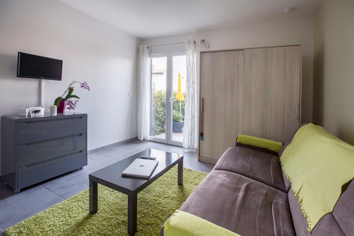 아파트 47m2... 저희 집 1층. 교통이 편리한 조용한 지역(버스 50미터 거리)/기차역에서 도보 10분/도심까지 도보 20분. 클리니크 생피에르 메인 입구에서 20미터 거리에 있습니다. - 리버서블 에어컨. - 침대 160cm/드레스룸 - 거실로 연결되는 가구가 완비된 주방 - 세탁기 - TV/Wifi - 마주보는 사람이 없는 전용 정원. - 스파(5곳). - 수영장 - 수건과 시트가 포함되어 있습니다. - 보육용품 금연 아파트. 늦은 체크인 불가