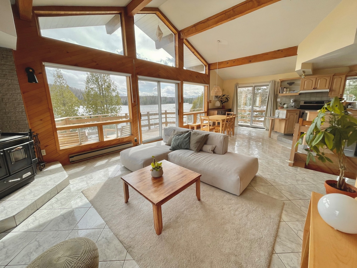 Cozy all-wood interiors with high ceilings and heated floors, a few board games. Step right into the forest to enjoy hiking, fall colors, fishing, snowshoeing, sledding, skating. A cozy hot tub and wood burning sauna, cinema nights with a projector. Off the beaten path - A 1,350 ft² chalet on a 30,000 ft² land, steps from Lake Marquis, between two regional parks. Perfect for 1–6 guests seeking comfort, nature, and discreet neighbours. Walking distance to grocery, bakery, and restaurant.