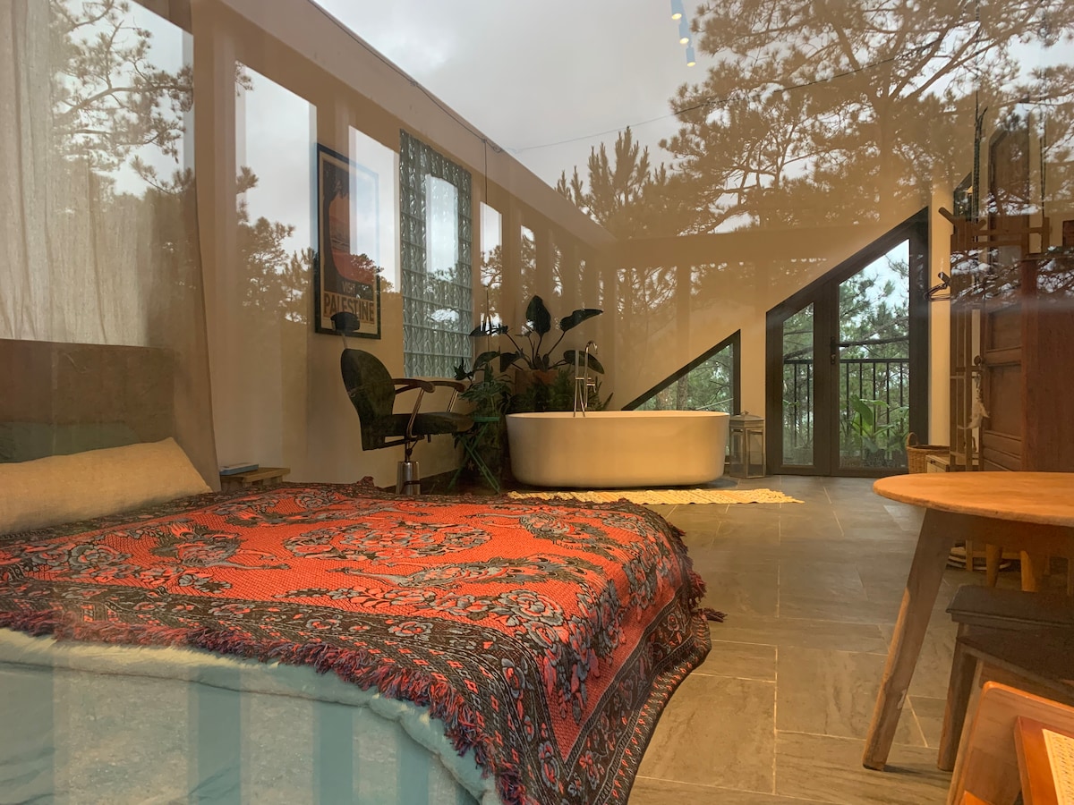 달랏의 커피나무와 꽃으로 둘러싸인 꿈결 같은 다락방 오두막으로 떠나보세요. 기울어진 창문을 통해 새소리와 햇빛을 받으며 일어나거나, 나무 발코니에서 별을 감상하거나, 시원한 산 공기 속에서 바비큐와 뜨거운 차를 즐겨보세요. 중심지에서 불과 10분 거리에 있습니다. 아늑하고 평화롭고 4~5명의 게스트가 휴식을 취하고 재충전하고 자연과 다시 연결하기에 완벽합니다.
