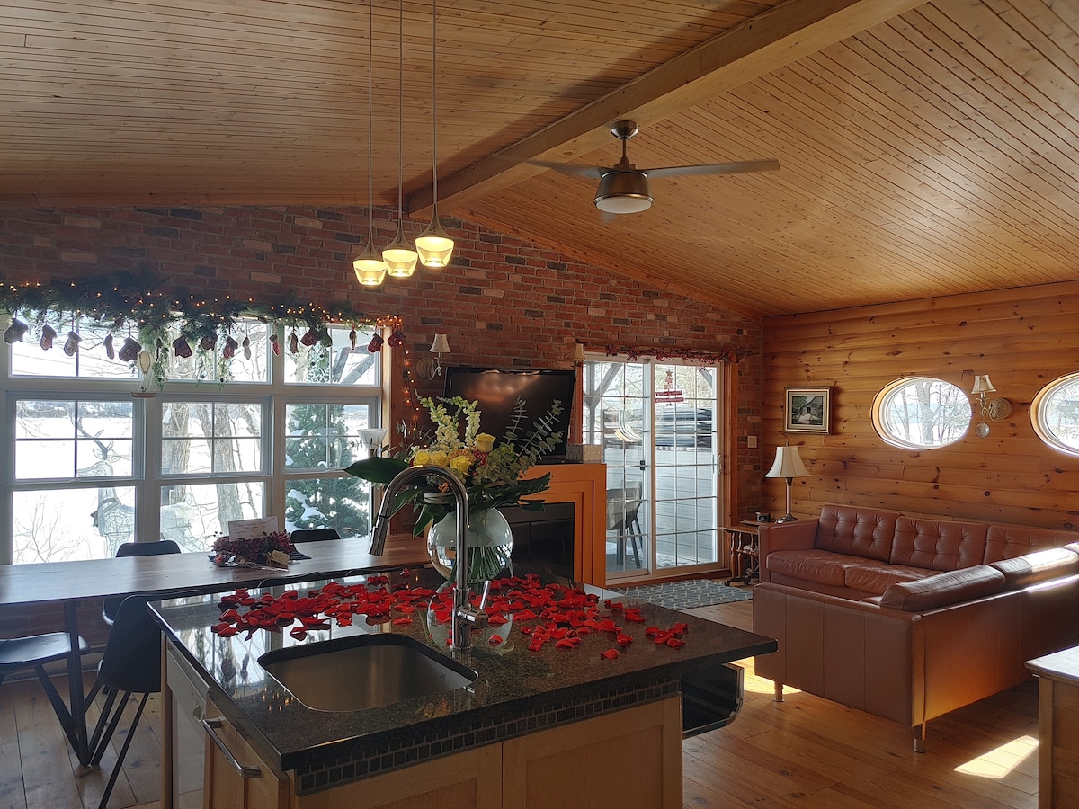 Splendide résidence surplombant le Lac Aylmer avec plage privée et coucher de soleil incroyable sur l'horizon. Long quai avec plateforme pour y passer de merveilleux moment ou y amarrer votre bateau. 140 pieds de plage privée, 1 kayak, 1 pédalo, foyers extérieur sur la plage et intérieur, table de pingpong et plusieurs autres jeux. Venez relaxer en famille sur un magnifique lac et résidence spacieuse pour vous et votre famille. **aucun événement/fête n’est autorisé, aucun invité supplémentaire.