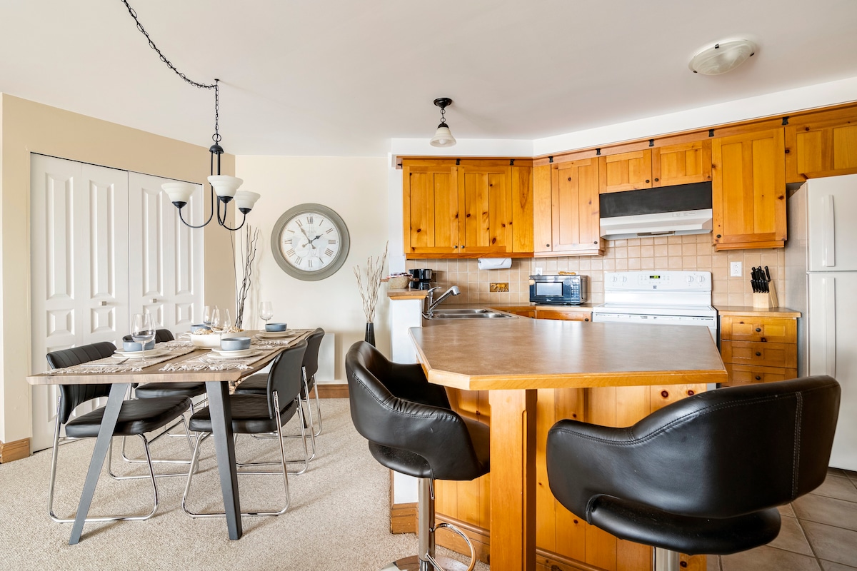 Relax and reconnect as a family in this stunning condo only accessible by stairs with a private balcony and stunning views of the mountains in the heart of Mont Tremblant! This condo, only accessible by the stairs, is perfect for families looking for a convenient and affordable place to stay in the Mont Tremblant ski resort. The condo is located in the heart of the lake community, just minutes from the slopes, shops, and restaurants.