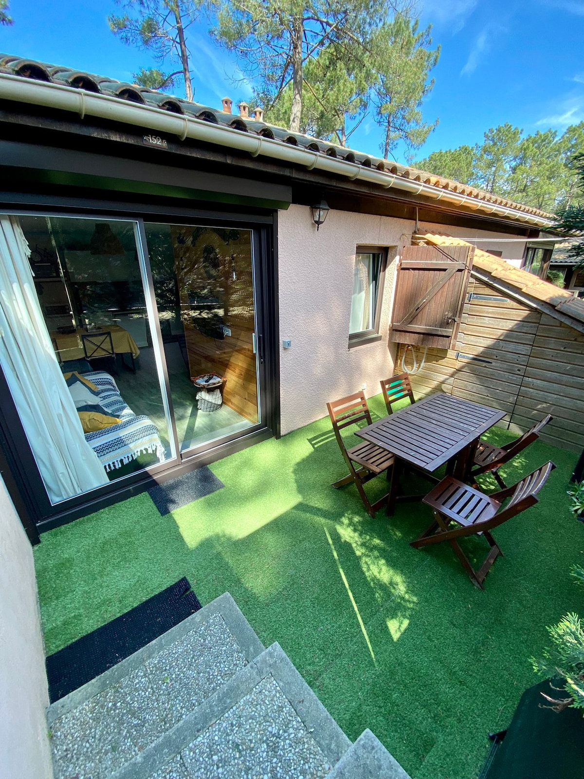 호수와 바다 사이의 소나무 숲 한가운데에 위치한 개조된 주택으로, 최대 5명까지 수용할 수 있는 이 숙소는 최대 5명까지 수용할 수 있으며, 간과할 수 없는 작은 테라스를 즐길 수 있습니다. 조용하고 달콤하면 숙박에 문제가 생길 수 있습니다. 차량 없이 상점과 액티비티를 이용할 수 있습니다.