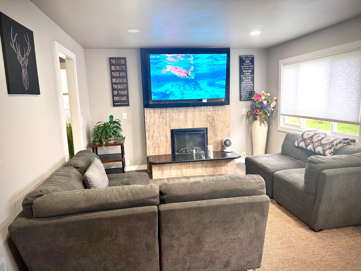Discover this updated 4-bedroom, 3-bathroom, 2300 sq ft home, fully renovated for ultimate comfort and style. Inside, enjoy modern finishes including a nice oversized walk-in shower. The large backyard is fully fenced for privacy, featuring a large covered patio with a cozy fireplace-ideal for outdoor entertaining year-round. Located in a peaceful neighborhood, yet conveniently close to freeways and shopping. Perfect for families or small groups seeking a relaxing retreat!