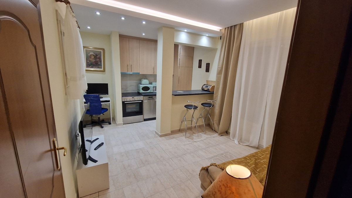 Enjoy a stylish stay at this centrally-located condo. - At the City Center. 5 min walk from Aristotle Square - 1 minute walk from Venizelou metro station with many bus stops also nearby - Several tavernas/restaurants & cafeterias at few minutes walking distance - Fully equipped & family friendly - Supermarket (Discount Markt & Market-in) available at 4 minutes walking distance and a larger one (Masoutis) at 5 minutes walking distance. A 24/7 always open convenience store just outside.