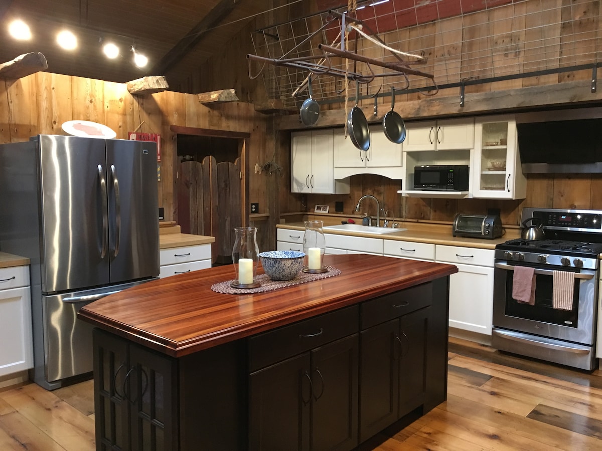 작업용 헛간 위에 있는 멋진 헛간 로프트에서 휴식을 취하세요. 귀뚜라미와 연못의 개구리 소리에 잠들고, 깨어나서 양, 염소, 토끼, 고양이, 오리, 닭을 쓰다듬으세요. 개방형 평면, 대성당 천장, 농장 장식, 소방용 기둥, 슬라이딩 헛간 문. 완비된 주방, 제트 욕조, 레인 샤워기, 세탁 시설. 석조 파티오, 화덕. 침실 2개, 소파 침대, 에어 매트리스. 닭이 알을 낳을 때 주스, 커피, 신선한 계란이 제공됩니다. 에어컨 없음. 반려동물 절대 금지 페이스북: oakspringsfarmwi
